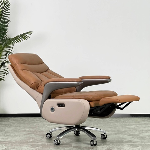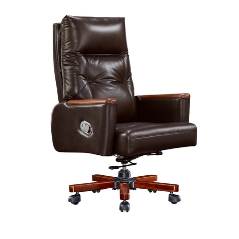 Silla ejecutiva eléctrica de lujo OEM, sillón reclinable de cuero Nappa con respaldo de madera y base de aluminio para oficinas de Dubai Arabia Saudita
