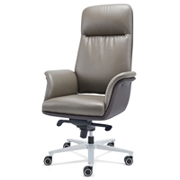 Silla ejecutiva con respaldo alto con diseño ergonómico de cuero de Napa gris y base de aleación de aluminio para oficina